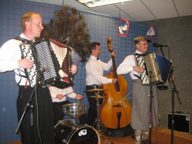 En norsk-amerikaner lengter alltid ”hjem”. Derfor har de laget et eget Hjemkomst senter i Fargo med en Scandinavian Hjemkomst Festival. Midt i bygget står et gedigent vikingskip og på plassen utenfor finner man en stavkirke. Her er det hvert år samling med skandinavisk mat, folklore, dans og musikk. GAS var meget stolte over å bli presentert som en av hovedattraksjonene hva gjaldt musikk, sammen med Bröderna Trück fra Sverige. Sons of Norway, Kringen Lodge i Fargo arrangerte også St. Hans fest med kåring av en ekte St. Hans, og her var vi engasjert til å spille til dans hele kvelden. |