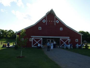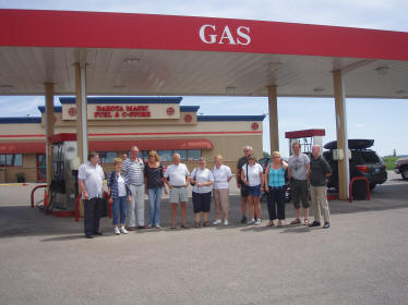 Etter avhenting av tre ”trekkspillbusser” – les ”mini-vans” - med god bagasjeplass og noen timer ”på øyet”, var det bare å legge ut på kjøreturen fra Minneapolis til Grand Forks via Fargo i North Dakota. Landskapet er ikke av det mest spennende, men til gjengjeld går det radig selv om strekningen kan virke lang. Første spilleoppdrag var for Sons of Norways distriktkongress. Vi fikk beskjed om å følge en av de store bussene ”langt utpå landet” til Draxton Farm. Her foregår oppdrett av 7.000 kveg, og den gamle låven fra 1903 er tatt vare på og omgjort til festlokale. Bevertningen i låven foregikk med hvite duker på bordene, og vi fikk underholde et par hundre publikummere i nesten to timer etter middagsserveringen så svetten silte. Her var det mange danseglade som fikset både hambo, masurka og polka. |