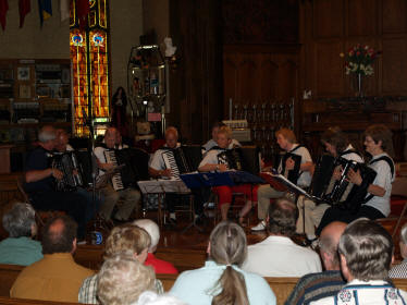 Ordentlig kirkekonsert med gammeldans på repertoaret ble det også på oss. Trinity Lutheran Church i Detroit Lake hadde markedsført konserten bra og rundt 300 hadde funnet veien. |
