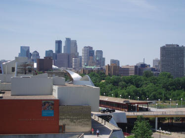 Ikke mindre enn 9 trekkspillere, bassist, gitarist og to ”bedre halvdeler” entret flyet til Minneapolis i hjertet av Midt-Vesten – det ”norskeste” distriktet av alle i USA. Allerede i immigrasjonskontrollen merker man at atmosfæren er annerledes enn det man opplever i det hektiske New York-området. De store pappeskene vi kom bærende på vekket naturlig nok nysgjerrighetene hos myndighetene, men da de fikk vite at de inneholdt trekkspill gikk det ikke lenge før de fortalte om en fjern slektning som utvandret fra Norge og som ofte spilte trekkspill. Det er alltid hyggelig å føle seg velkommen på et fremmed kontinent. |