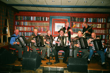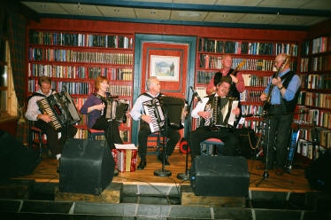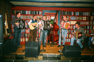 Reitans gruppe med toradar og komp av "Holekarane". Kjell Tafjord, trekkspel |