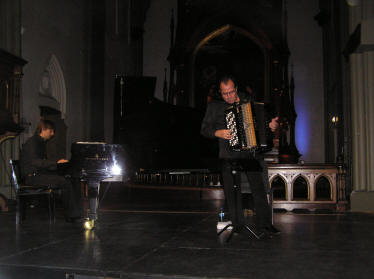 Galliano hadde ikke med seg sitt bandoneon som han bruker mye i tangosammenheng. Denne kvelden benyttet han kun sitt kromatiske knappetrekkspill. Midtveis i konserten leverte de hvert sitt solonummer. Galliano valgte en medley av klassiske fuger og man fikk assosiasjoner til trekkspillets opprinnelse – nemlig et transportabelt kirkeorgel. Umerkelig gled han derfra inn på Liebertango hvor han ga alt. Lundgren valgte svenske folkemusikktoner i jazzarrangement som minnet mye om Jan Johansson-stilen.