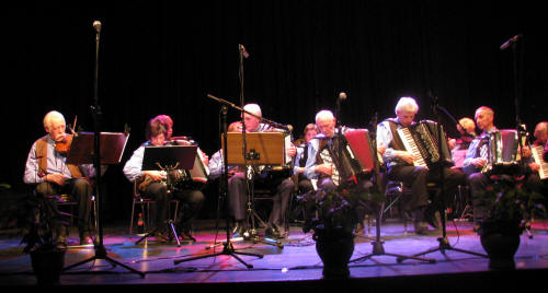 Direktør Erik Vadholm i Akershus Fylkeskommune sa i sin åpningstale at det er spesielt viktig å ta vare på imaginære kulturminner som ikke er dokumentert, det være seg viser eller historier. Han understreket også at tradisjonsmusikk ikke nødvendigvis er folkemusikk fra dalførene, men også runddansmusikk fra flatbygdene. Lensbygda TK fortsatte med ”Arnes masurka”, ”Nyttårsklokker” (vals) og ”Hilsen til Toten” – en lokal slått. Angerd og Henry Hoel var selvsagt invitert som gjester, samt sønnen Morten Hoel. Morten har også vært elev av Ottar, men sluttet å spille i 1985. Han kunne fortelle at han var nøye på belgbruk og rytmikk. På bussen fra Oslo til Skreia skrev Ottar ”Mortens Skreiavals” som vi også fikk høre fremført av Lensbygda TK. Feriene tilbragte nemlig Ottar på Toten. |