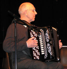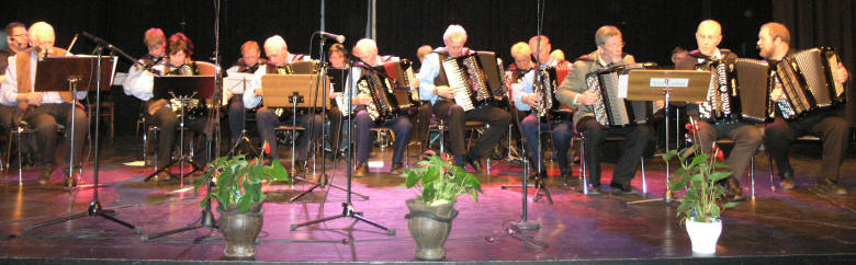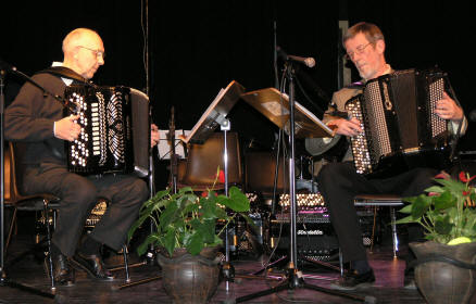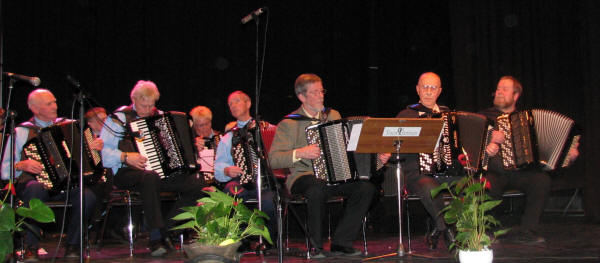 | Med scenen overlatt til Faukstad og Blyverket for første gang sammen, fikk vi høre ”Festivalmarsj”, ”Guerrini polka” og en meget virtuos masurka, ”Triollek”. ”Telemarksving” var kanskje den som flest i salen dro kjensel på. Denne er ikke laget av Nyborg, men finnes på en plate utgitt der han spiller sammen med sin elev Alf Blyverket. Nyborg var også klassisk skolert og har bl.a. komponert en 4-stemt fuge som forenklet beskrevet fungerer nærmest som kanon. Denne ble således framført av Harry, Leif, Alf og Jon. |