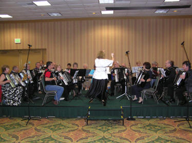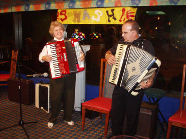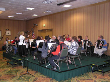 America’s President elect, Obama, faces great challenges ahead. So far, we have not heard if he plays a musical instrument, if he does it is doubtful if it would be an accordion. President Karen Adam of the Florida Accordion Association (FAA), is far from a newcomer and has been responsible for arranging earlier SMASHes. The Southeast Accordion Association includes the states in the Southeast corner of the USA – Florida, Georgia, Alabama, Mississippi, Tennessee, North and South Carolina, Kentucky, Virginia, and West Virginia. It is always challenging to arrange for large numbers to come together in a gathering, but it is so much more difficult when there are such large distances involved. Approximately 200 decided to take a holiday in Florida to play music and generally have a good time. This year, the youngest attendee was 9 year old Jamie Miyagawa from Navarre in Florida, who demonstrated what she had learned on the accordion since she started in March. The SMASH' eldest was over 90 years of age. |