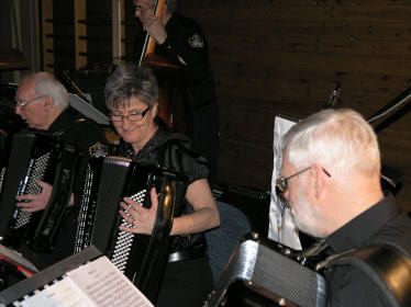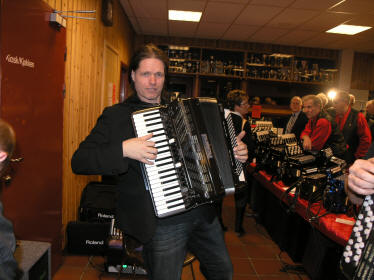 De ivrigste danserne kommer gjerne 1 time før for å sikre seg plass og er å observere på dansegulvet fra det første orkesteret entrer scenen og fram til midnatt. 2RE-2NE-R2 3KKSPILLTROLL fra Oslo må også regnes som gjengangere. De hadde mye besøk ute i gangen hvor de hadde salgsutstilling av trekkspill. I år var det også mer som skjedde ute på gangen. Runar Wold fra Roland Scandinavia demonstrerte digitaltrekkspillets mange muligheter og det var selvsagt anledning for de som ville prøve. Orkestrenes repertoar bestod i hovedsak av gammeldans, men ellers benyttes trekkspillet i dag ofte i de fleste genre. Det blir spennende å følge utviklingen de neste 10 årene. Tidligere reportasjer: |