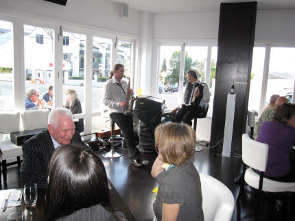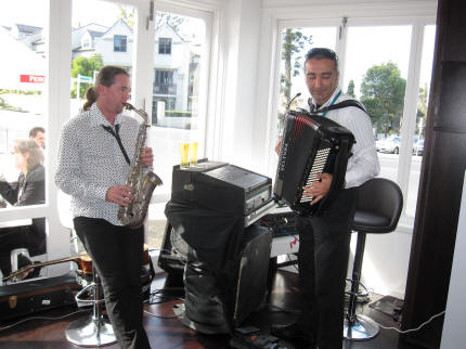 | Domenico Taraborelli (trekkspill) og Adam Connelly (saksofon)... | ...spilte under lunchen på den italienske restauranten Portofino |