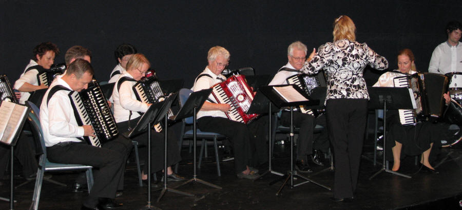 | North Shore Musicale Orchestra er den "voksne" hobbygruppen av trekkspillere, her med dirigent Erica Knights. De møtes ukentlig til øvelse. I de senere år har de også kjempet mot North Shore Accordion Orchestra in NZ Accordion Orchestra Championship. |