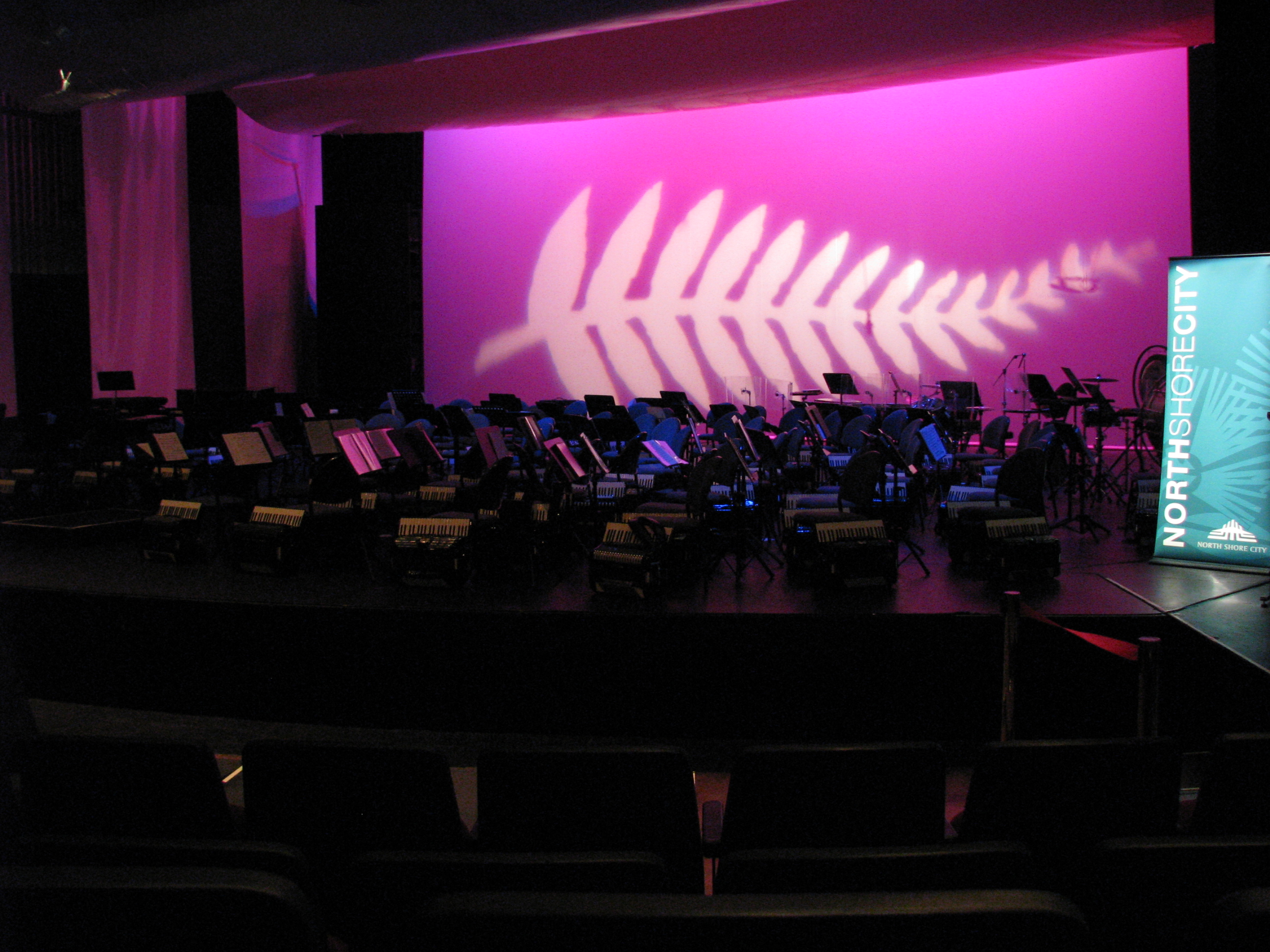 | Bladet i scenebakgrunnen kalles "fern" og går igjen på alle suvenirer fra New Zealand. Selve treet kalles "punga". | For tredje gang samlet man rundt 110 trekkspillere fra hele verden til et kjempeorkester (CIA 2009 World Accordion Orchestra III). |