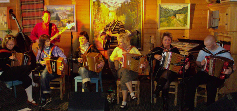 Laurdagskvelden som alle ser fram til vart spanande med både kjende og ukjende grupper. Per Hammerø overraskar ofte og har alltid spanande ting på repertoaret. Litt nytt, litt gammalt og litt sjølvkomponert. Dei verbale kommentarane er også fint å få med, presentert med Per sin spesielle stil og dialekt. Denne gongen hadde dei og blese støv av den gamle "Flyskrekk" gruppa, og den svinga skikkeleg bra. Gammaldans krydra med spanande akkordbruk så det kribla i dansefoten. Det som vart presentert denne gongen bar bod om ein ny vår for denne kombinasjonen. Speleglede og virtuositet til tusen. Vi sakna denne gongen litt gitaristen Reidar Dale, som vel var oppteken i anna oppdrag. Eid Spelemanslag held posisjon og har greid å fornye seg. Ein del solide aktører som får det til å svinge. Dei har også lagt inn litt populære melodier og "sullar" litt attåt. Det løfter litt på stemninga. Dei hadde litt forfall, med brødrene Anders og Harald Bjørneset støtta godt opp som medaktørar. Så var det Volda Toraderlag med lang fartstid, som også held nivået med gammaldans og i melodiutvalget finn ein og tango og friske swinglåtar. Etter dei kom Nordvesten under leiar Åsmund Egset, som spelar triveleg og variert dansemusikk. Populært danseorkester der dei kombinerer torader og trekkspel. |