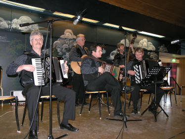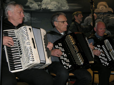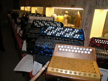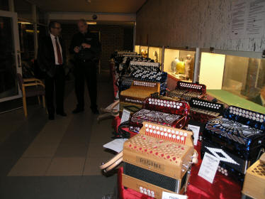 | 3kkspilltrollene fra Oslo var på plass med stor salgsutstilling av trekkspill.... | .....hvor det ble buskspill på gangen med prøvespilling. |