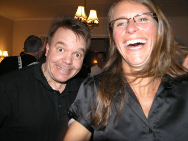 | Elin Jørgensen med venner - Lars Gundersen t.v. | Elin og Tore Gorseth (som også holdt styr på lyden nede i Festsalen) |