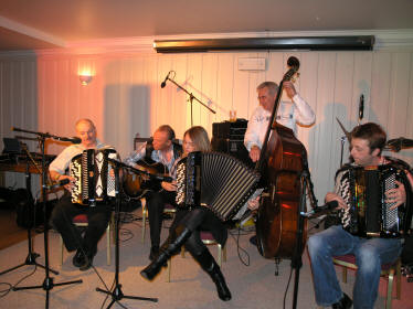 | Moss Trekkspillorkester - Erlend Enger og John Rudshagen | Moss "mini" Trekkspillorkester, men det låt bra. Vidar Stenseth (bass), Anita Nesselquist og Christin Øra |