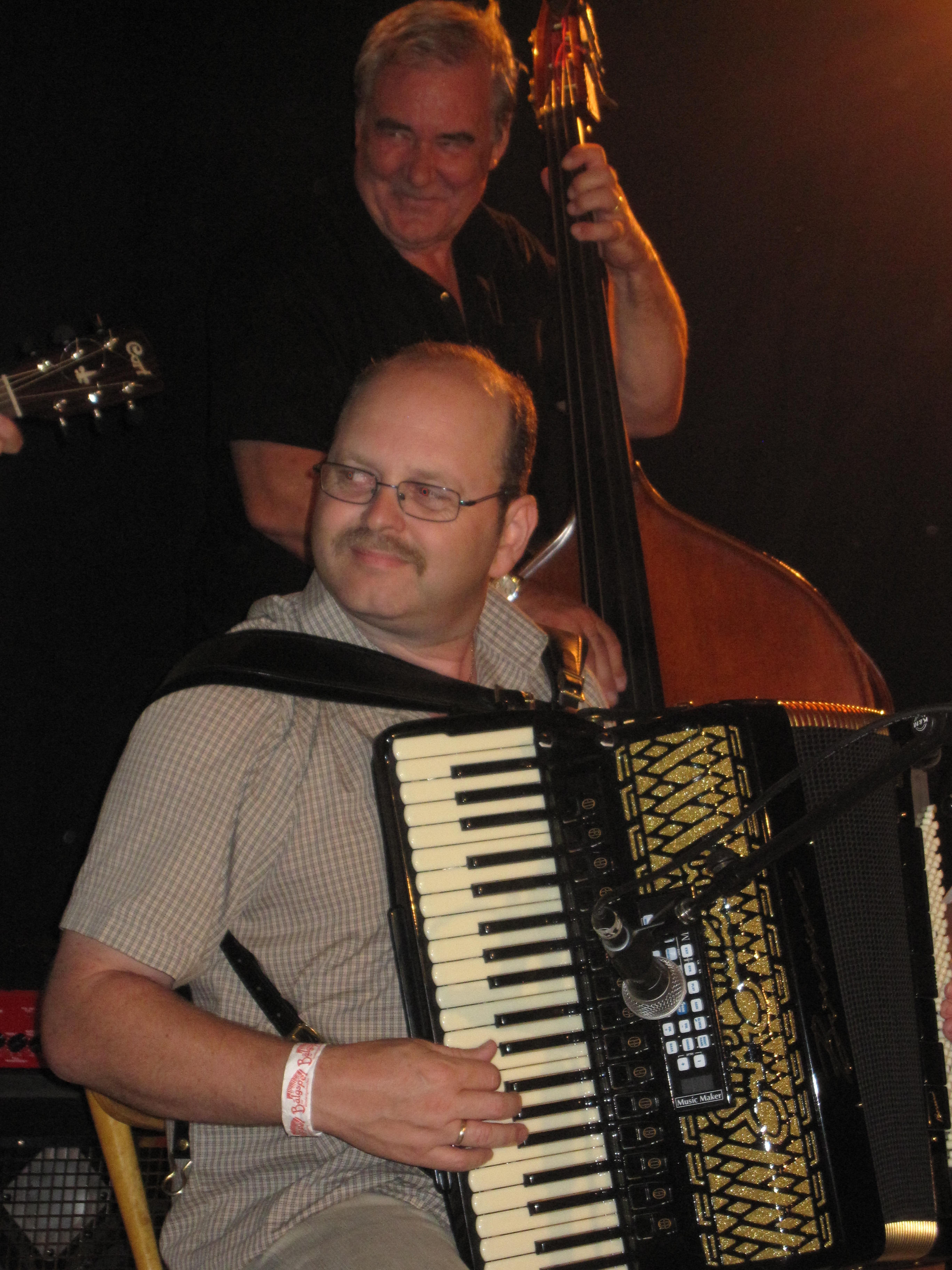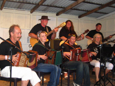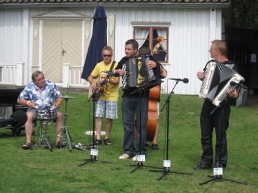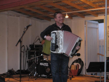 | Slik ser det ut for Happy Skvett når de har det artig på scenen og det smitter over på publikum. | Kremmerns venner fra Sokna - lørdagen spilte de inne på Loge C og denne gangen med mikrofoner og lydanlegg ;-) |