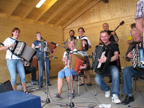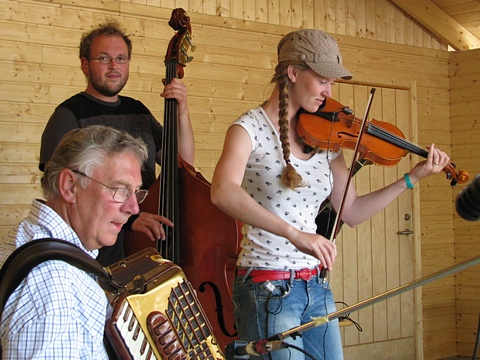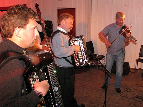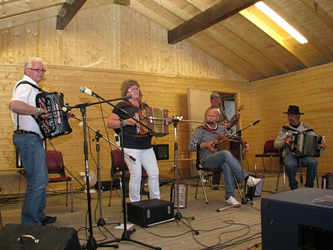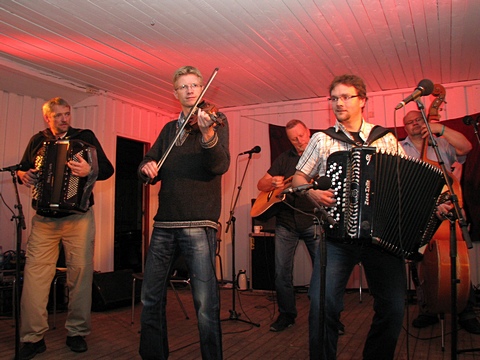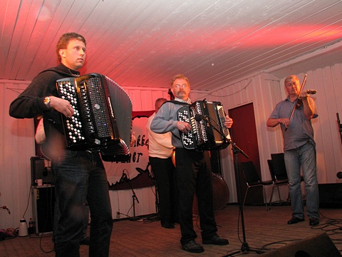 "Østaljom" har ikke noe imot å spille litt når de først er på farten - her det 2. settet på lørdag. Og bare med en gruppe i mellom var Fingarsen og Evje i gang igjen, da sammen med Egil Haugerud på torader. |