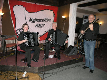 | "Løvås, Haugerud og Fingarsen" - Marianne Løvås og Egil Haugerud... | ... og Oddvar Fingarsen (trekkspill). |