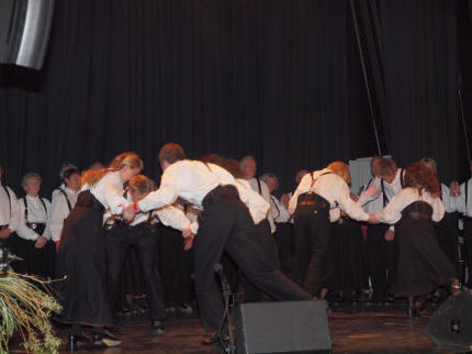 Johan Bahus er navnet på stifteren fra 1979, og hans komposisjon Aanesrud-valsen ble åpningsnummeret på konserten. Danserne viste oss "stopper'n" og "armkrokreinlender". Tore Eng komponerte en dans til 10-års jubileet kalt "Uttur fra Hurdalen", som ikke minst er en rytmisk utfordring for spillemennene. Juniorenes oppvisning av dansen "Med luftige svev" var nok den som moret publikum mest. |