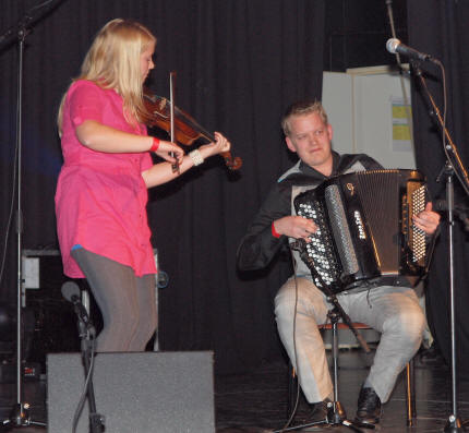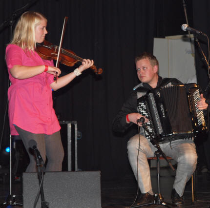 | "Tonje & Stein Magne". Stein Magne Eggen - ferdig utdannet fra Norges Musikkhøgskole i fjor og et råskinn på trekkspill. | Tonje Lien Barkenæs - eneste A-spiller på Landskappleiken fra Nannestad! |