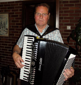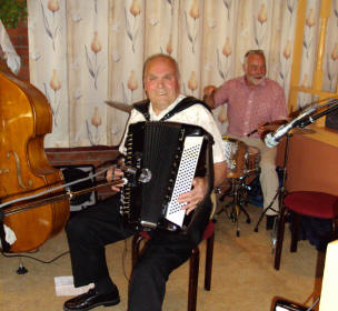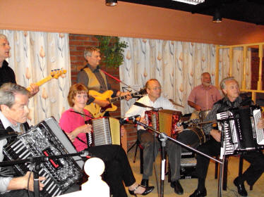 | Nordvesten frå Ørsta-Volda med leiar Åsmund Egset til høgre med trekkspel. | Trekkspelaren Lars Håvik fiksar det meste. Aktiv i Åmdalen trekkspelklubb, men spelar og med eiga gruppe. |