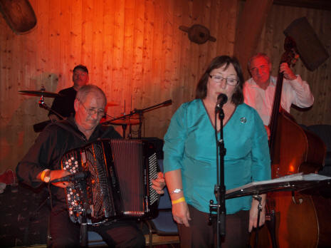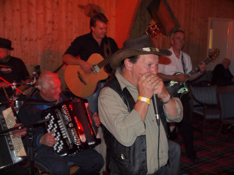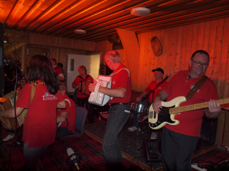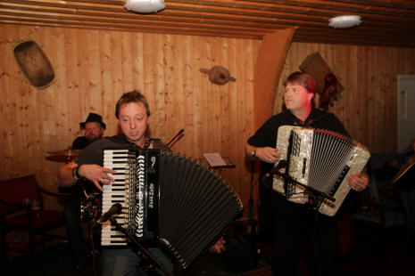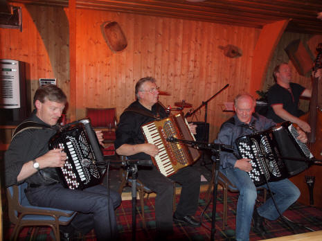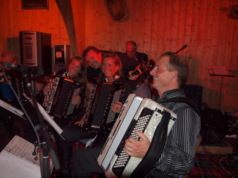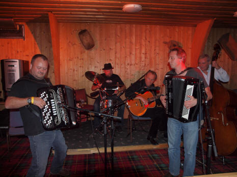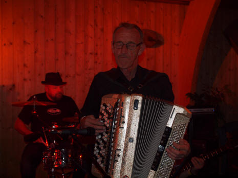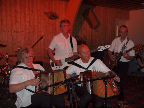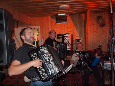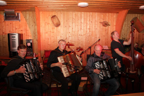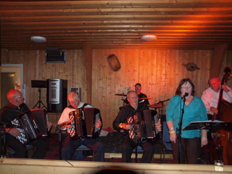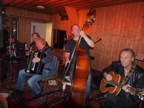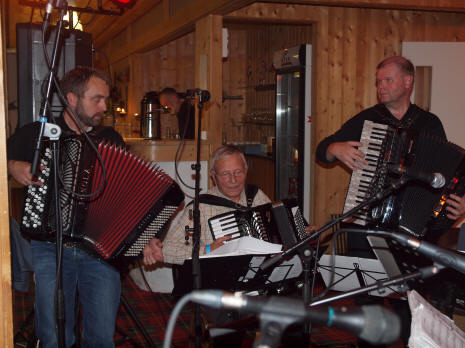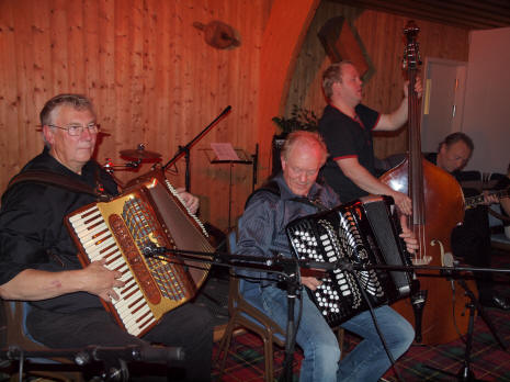 | Aage Sogn's orkester - f.v. Helge Hysjulien, Oddvar Fingarsen og Aage Sogn selv | Geir Aage Sogn på kontrabass må oppleves. Stillbilder kan ikke på noen måte gjengi hans scenefremtreden ;-)) |
