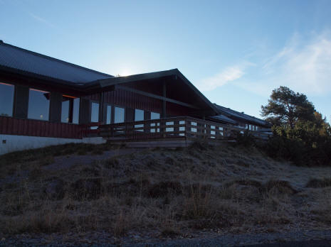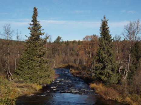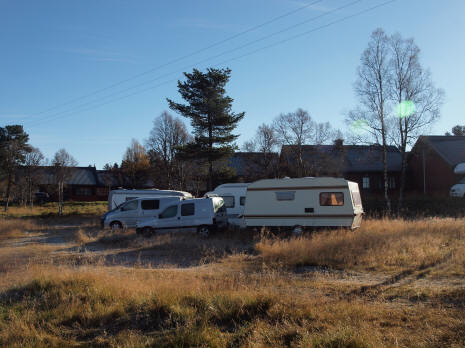 | Hvitkledde fjelltopper i det fjerne minner om at vinteren ikke er langt unna | Men vi observerte noen som tok morgenkaffen ute i det fri. Er det camping så er det camping... |