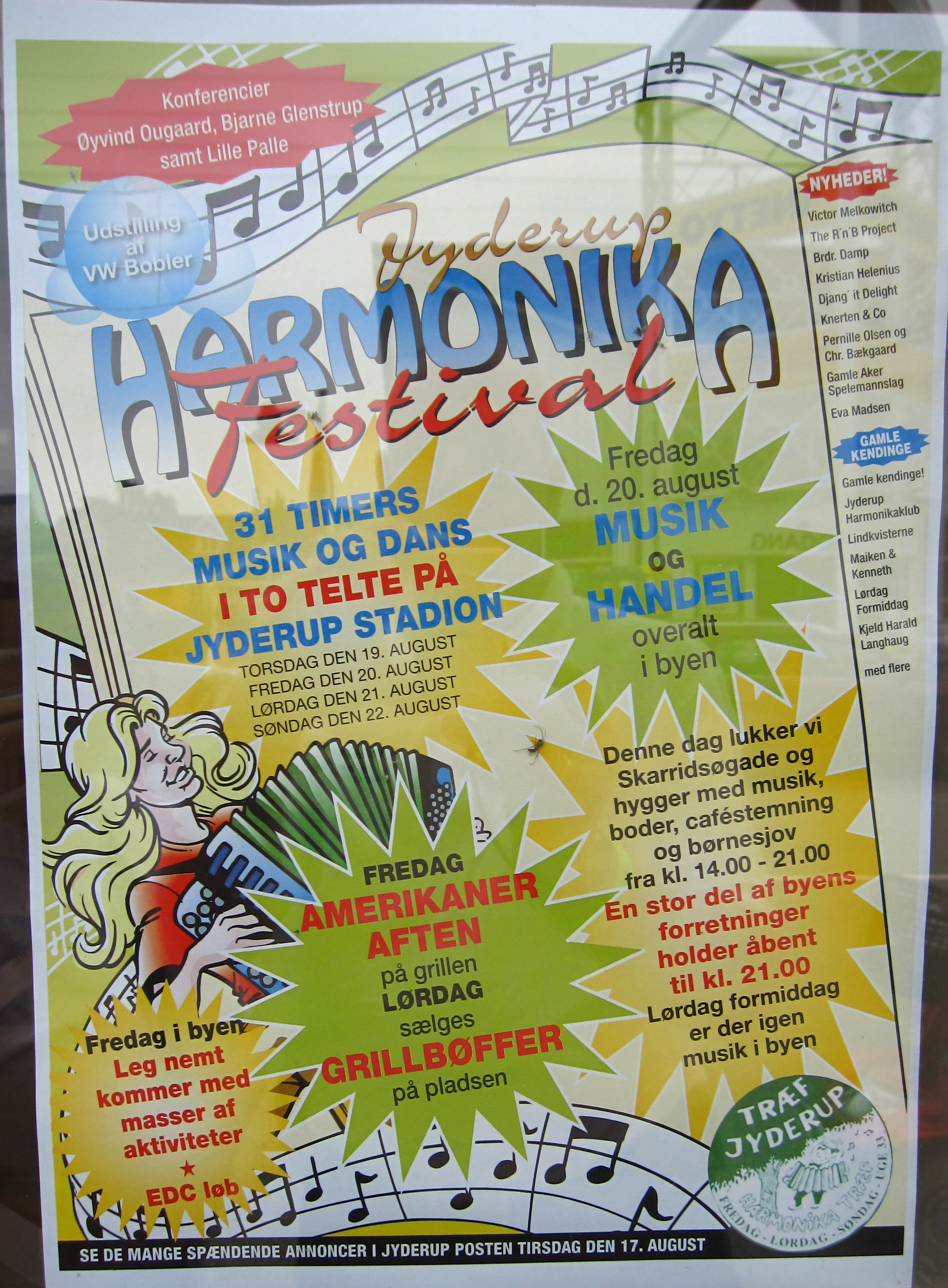 Det ble ellers en variert musikalsk helg med musikere fra Skandinavia. Flere av Danmarks harmonikaklubber var på plass og ikke desto mindre "The R'n'B Project" med Søren Brix og Christian Rusbjerg. Rasmus Mose er fremdeles en meget ung mann, Bruno Jensen har vært med lenge i gamet, mens ungjenta Pernille Olsen imponerte enda mer nå enn for 3 år siden.