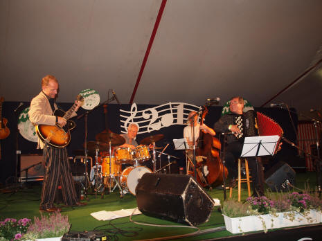 I 2007 var Art Van Damme Quartet hovedattraksjonen i Jyderup. I år var det Kjell Harald Langhaug fra Norge med det samme kompet som skulle fylle denne rollen. Med sikre og erfarne musikere som Jacob Fischer (gitar), Mads Vinding (kontrabass) og Aage Tanggaard (trommer) ble det en fornøyelig liten time for det jazzelskende publikum. |