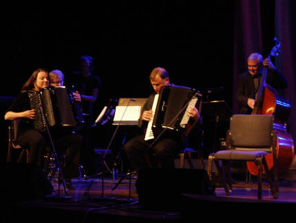 Herr Langhaug er også selv en habil komponist og vi fikk høre “Accordion Circus” og “Bryllupsvals til Lena og Jörgen” - fremført nettopp av Lena S. Rist-Larsen og Jörgen Sundeqvist. De giftet seg på Norges nasjonaldag for et par år siden, og det må utvilsomt være artig med en “presang” som kan “gjenbrukes” på en slik utmerket måte.