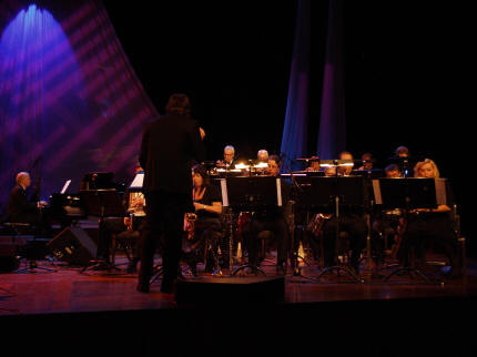 Neste par ut - som faktisk var et fullstort Hønefoss Storband fremførte “Up Front” av Lennie Niehaus og var kveldens omtrent eneste “trekkspillfrie” innslag. Et fint avbrekk var også Ketil Rasmussens vokal- og solistinnslag med storbandet. Han er også kjent som “bassisten i Nordkappkvintetten”, men det er som nevnt lenge siden det. Det var ikke uten grunn at Hønefoss Storband var invitert, for som siste innslag før pausen fremførte de Harald Gundhus komposisjon “Suite for accordion and jazz band” med selvsagt Kjell Harald Langhaug som solist. Noen av oss har nok fått med oss dette artige verket ved et par tidligere anledninger, men ingenting er som å oppleve det i en fin konsertsal og i en slik god “setting”. |