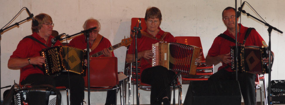 | Anna fra Tunnbybälgarna byttet ut trekkspillet med mikrofonen på "Vår sista dans" og "Nu mår jag mycket bättre" | Svennes gäng fra Borlänge |
