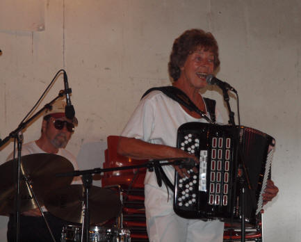 Mange hadde møtt fram for å få med seg Sone Banger (født 1939). Sammen med Göran Persson hadde de en time til rådighet før dansen igjen skulle begynne. De åpnet med kjenningsmelodien til "Grabbarna i 57:an" som ble TV-serie i 1978 basert på en svensk film fra 1935, og valsen er komponert av nettopp Sone Banger. Deretter var det "Kråkspark-duett" før Sone framførte litt solo-jazz. Göran hadde satt sammen et artig potpurri av svenske sangvalser, og han behøvde ikke be publikum to ganger om å stemme i med sang. Musettevalsen "Mella-Mon" hører også med når Sone Banger holder konsert, og han trives fortsatt best på scenen når han får sitte på sin enkle trekkspillkasse av tre. Under en konsert med Sone i Mariestad i 2006 lurte vi på hvor bassisten hadde gjort av seg og det samme spørsmålet stiller vi oss selv etter denne konserten. Han benytter avansert midistyring fra "Bonotron", men har selv full kontroll på bassgangene som såvisst ikke overlates til automatikken alene. Det ble også tid til en pasadoble av André Walter. Avslutningsnummeret ble en riktig fengende "Skjærgårdstango". |