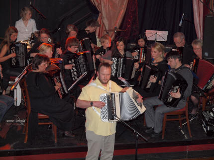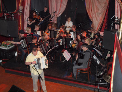 Med et 20-talls ferdige musettearrangementer trengte Bjørstad noen til å utøve musikken. Malm trekkspillklubb tente resolutt på Bjørstads musetteprosjekt. Det gjorde også Moss Spellemannskompani (MSK). Bjørstad har gjennom flere år arrangert musikk for de unge "spellemennene", og de har framført mange av arrangementene på sine årlige nyttårskonserter. I fjor høst gikk de på med krum hals for å øve inn så mange av musettelåtene som mulig. Lørdag 16. januar ble det så invitert til nyttårskonsert i det flotte lokalet Tivoli Amfi i Moss sentrum. MSKs dirigent, Otto Kiss, hadde stått for innstuderingen av stoffet og med seg som solist på nyttårskonserten hadde de selveste Skjalg Bjørstad. |