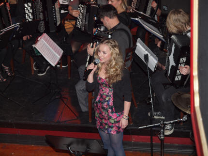 Navnet Bjerketvedt kjenner vi igjen fra flere sammenhenger der Sofie, nå kjent fra musikalen Mamma Mia, ofte har vært vokalsolist for MSK. I år var det navnet Sanna som stod på programmet. 16-åringen har virkelig gått i sin søsters fotspor, og hun hadde imponerende vokalinnslag både solo og sammen med MSK og Skjalg Bjørstad. |