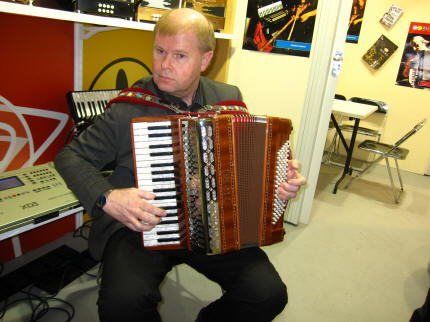 | Prøvespilling på Rolands V-accordion stand | Rolands nye mellomklassemodell FR-3xb |