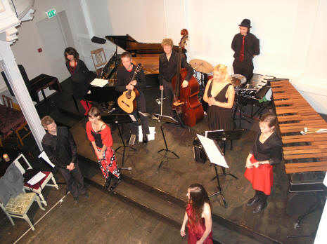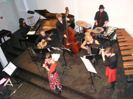 Det var ensemblet TANGABILE som inviterte. Dette er syv unge musikere som til daglig studerer ved Norges Musikkhøgkole (NMH). Naturlig nok fant de hverandre der, som de selv uttrykker det - i de evige korridorer. Samspillet var aldeles utmerket selv om de først startet opp dette prosjektet denne høsten.