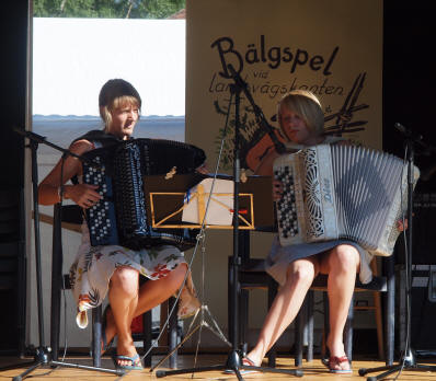 | John Eriksson, Linnea Syrjälä og Jonas Sjöberg hadde en fin presentasjon av "Take five" og "Belviso" | Emelie Nygren (t.v.) og Sofia Åkesson fremførte "Fars gånglåt" |