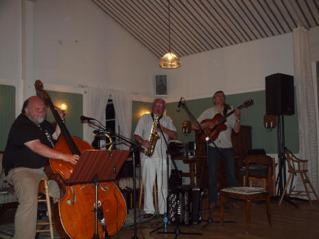 I år var det jazzkonserter innendørs på Vertshuset hvor det også er god matservering, så naturlig nok ble det trangt om sitteplassene. Fredag var det Sören Rydgrens trio som hadde "Jazz vid landsvägskanten". Lørdag var det Asmund Bjørkens orkester som underholdt. Den 77-årige musikeren har så vidt ikke glemt sine kunster hverken på trekkspill eller saksofon. I orkesteret hadde han med seg Ove Bjørken (gitar/fele), Oddmund Finseth (kontrabass) og Oddbjørn Prestvik (trommer), og det ble både brasilske rytmer (Tangerine) og kjente standardlåter fra jazzen.