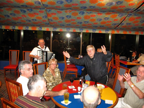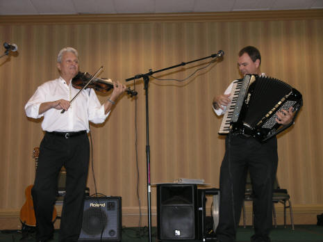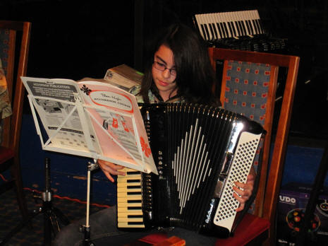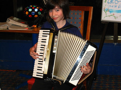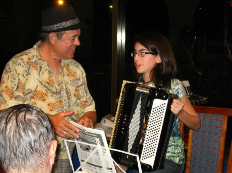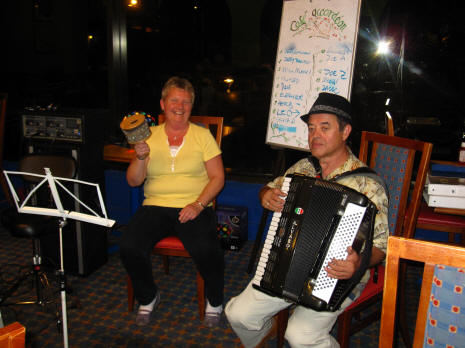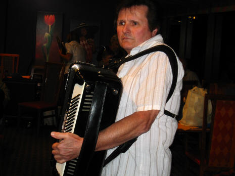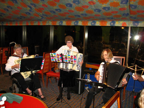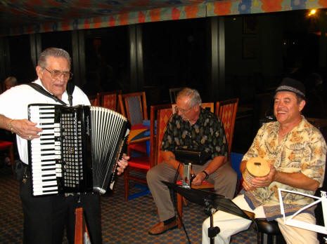 Fredag kveld møttes man som sedvanlig til uhøytidelig spilling i caféen på hotellet, sydd sammen av Alvaro Barsi, der alle var velkommen til å bidra. Et par unge trekkspillere, Jamie (11) og Ryan (13), fikk også prøvd seg der som solister. |