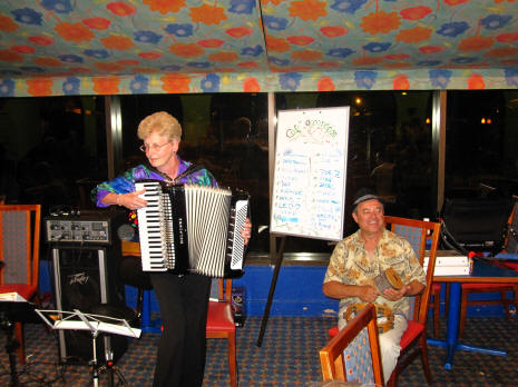 Flere av årets utøvere hadde "blåst" støv av instrumentet, og hentet det fram fra skapet. Donna Dee Ray fra Ormond Beach i Florida ble "oppdaget" i fjor da hun satt i en krok og spilte for seg selv. I år var hun hentet inn som en av utøverne det var vel verdt å høre på, og trekkspillferdighetene var så absolutt intakte. |