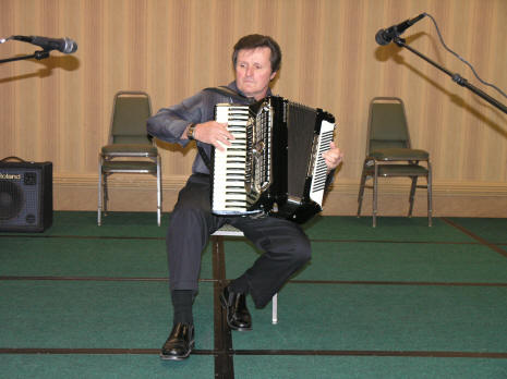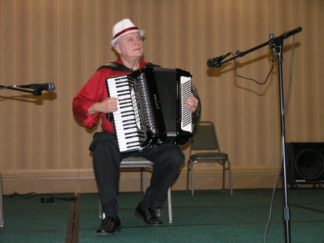 | "The showstopper" Tony Lovello åpnet kveldens konsert - www.accordionmusic.com - 77 år - "pushing 78" | Han har turnert med kjente personer som Debbie Reynolds og Frank Sinatra. Sitat fra programmet: "Don't forget to fasten your seatbelts and find shelter before this tornado tears through the audience. His performance of his signature song, "Malaguena", should be insured by Lloyds of London!" |