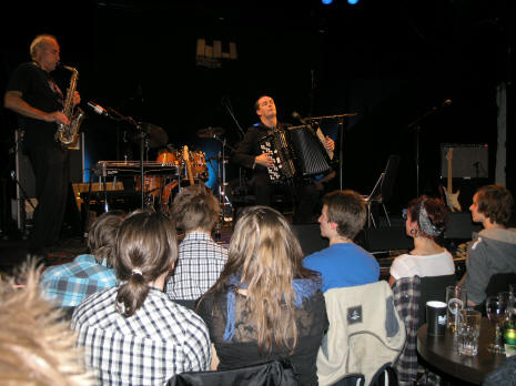 Lørdag 22. oktober var det konsert med Farmers Market på Victoria, Nasjonal jazzscene som er lokalisert midt på Karl Johans gate i Oslo. "Takk for at de ikke sitter heme og ser på tv i kvell", åpnet Stian Carstensen med. Denne helgen var forøvrig som et "Kinderegg" hva gjaldt "trekkspill i Oslo": 1. Farmers Market, 2. Syvers orkester på Rundsnuens høstfest i Nordahl Bruns gate og 3. Juttullaget med dansefest på Riksscenen. Multimusikeren "Stian" kan vanskelig komme bort fra at han blir det naturlige midtpunkt med de mange instrumenter han trakterer, men uten sin medmusikkfeller og tidligere studiekamerater fra jazzlinja på Musikkonservatoriet i Trondheim, er det utvilsomt at de kun samlet utgjør Farmers Market. |