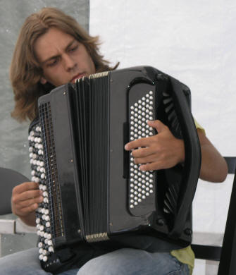Dermed var det unge Dmitro Mazur som fikk hele musikalske ansvaret denne kvelden. Dmitro er student ved Det Nasjonale Musikkakademi i Kiev, Ukraina (Tsjaikovskijakamediet). Trekkspillinteresserte har trolig lagt merke til den unge gutten på Karl Johans gate i sommer, som har 2 år igjen av studiene på akademiet i Kiev. |