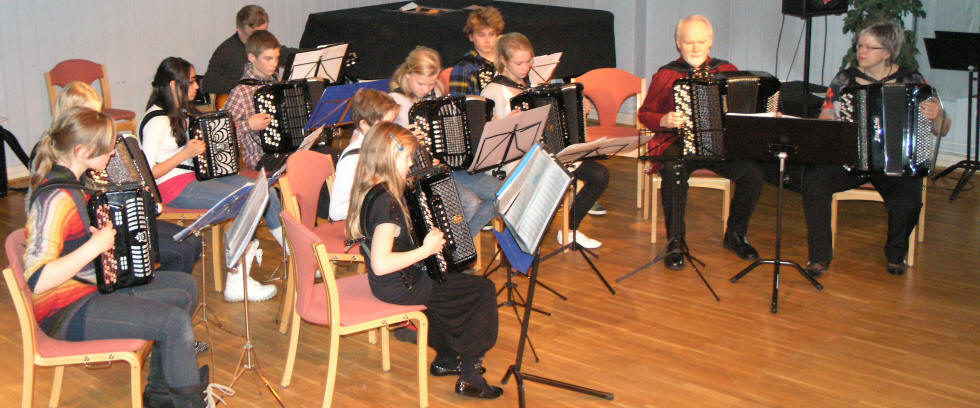 Årets julekonsert for trekkspillelevene på musikkskolene i Bærum og Oslo ble avholdt 12. desember 2011 i Oslo Kulturskoles lokaler på Grønland, Oslo. Siste helgen i oktober deltok disse elevene på seminar på Hundsund skole på Fornebu, hvor de ble inndelt i seminarorkestre. Noe av dette repertoaret som ble fremført på konsert under seminaret, ble benyttet også på julekonserten i tillegg til julemelodier. "Trekkspilljuniorene" har vokst seg til og har nå fått sitt arvtagende orkester i "Mini-Fisharmoniske". Calle Jularbos "Jul-vals" var med på programmet, men dette er jo egentlig slett ingen julemelodi fikk vi vite av Anders Grøthe som hadde arrangert denne for "Trekkspilljuniorene".