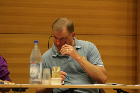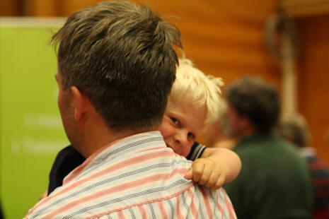 | Grøthe junior, trygt på pappa Per Jørund Grøthes skulder | En av dommerne, Jörgen Sundeqvist. Det ble ikke så altfor mange pauser. |