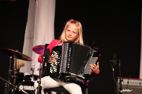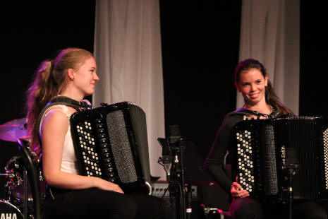 | "Tøffe jenter"...og glade jenter som her nok var litt spente før de skulle inn på scenen | Mini-Salat'n Trekkspillorkester/Salat'n Trekkspillorkester |