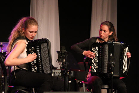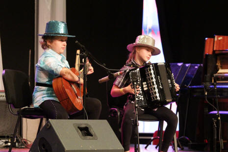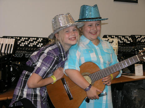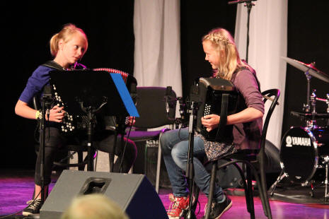 | "Tøffe jenter" - Anna Ouff Grøthe (trekkspill) og Rebekka Rist-Larsen (gitar) er bare ni år, men det er langt fra første gang de deltar på NM | De deltok i "Åpen klasse" og fikk velfortjent både dommer- og publikumsprisen :-) |