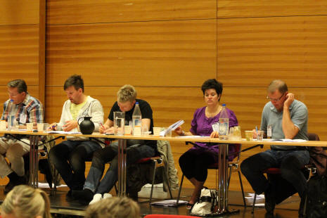 | Dommere i noteklassene: f.v. Øyvind Strand, Glenn Sørskår, Kai Hansen, Kristin Krogvold Eriksen og Jörgen Sundeqvist | Gammeldansdommere: f.v. Irene Tillung, Jo Asgeir Lie, Kaj Endresen |