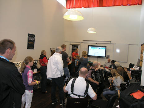 | Tonje Lien Barkenæs og Stein Magne Eggen på sin Bugari Silver Plus Lite holdt en minikonsert i utstillingsrommet til 3kkspilltroll..... | ...og da varte det ikke lenge før flere ville være med... |