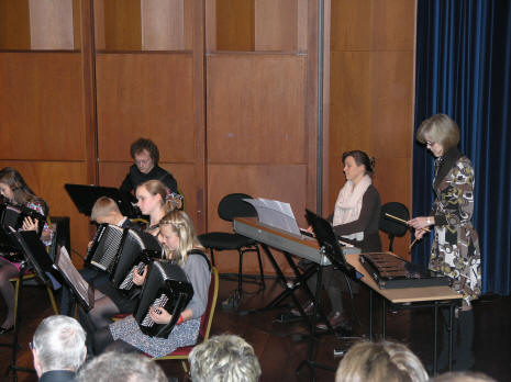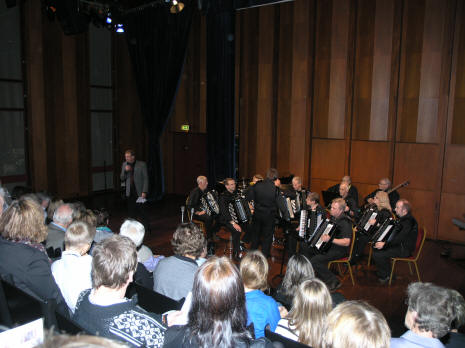 | "Mini-Fisarmoniske Orkester" med foreldre (men...Lars Røyseng er bare vikar for en av foreldrene så bare det er sagt ;-)....) | Underholdingsmusikk, div. 2: "Mini-Fisarmoniske Orkester" med foreldre - "Drømmen om Elin", komponist: Calle Jularbo, arr.: Anders Grøthe - "Wiggen", komponist: Rupert Wigg, arr.: Anders Grøthe |