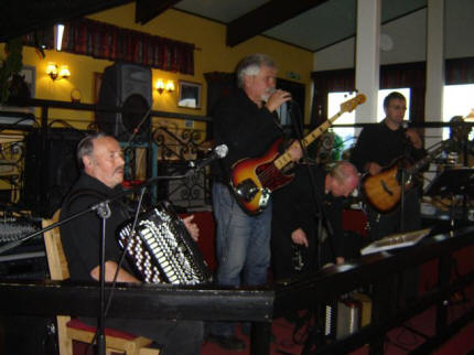 | "Kaffeknikta" - f.v. Svein Smeby (trekkspill/sang), Kolbjørn Johnsen (trekkspill), Jan Ripsrud (bass), Odd Egeberg (gitar) og Vidar Smeby (trommer) | Dølakvartetten bidro med både spill og sang |